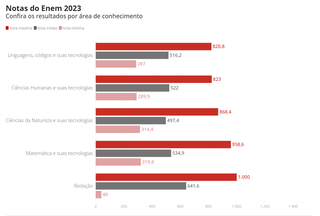 O Inep também divulgou as notas por área de conhecimento. Confira abaixo.