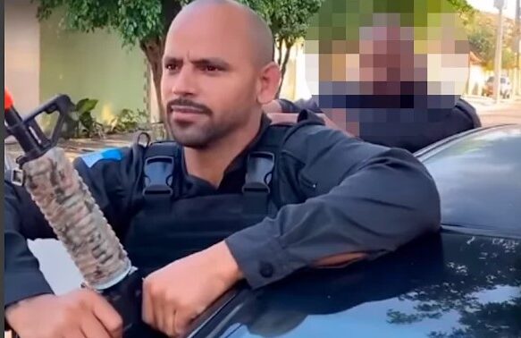 Os agentes encontraram o influenciador e perceberam que ele estava vestido como policial militar. Ele também carregava réplicas de fuzil e de pistola, colete à prova de balas, rádio e outros materiais.