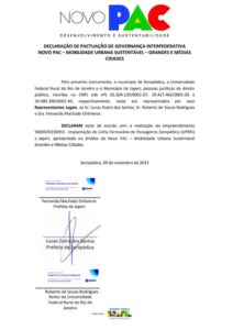 Na última sexta-feira (24), o prefeito de Seropédica, assinou o termo de pactuação para a construção de estação e ligação ferroviária entre os municípios de Seropédica e Japeri. A cerimônia foi realizada no gabinete do reitor da Universidade Federal Rural do Rio de Janeiro (UFFRJ) e contou com a presença do secretário de Estado de Transporte e Mobilidade Urbana, Washington Reis. A obra para a implantação do Trem Intercidades (TIC) foi incluída no Novo Programa de Aceleração do Crescimento (PAC), lançado pelo governo federal e que prevê investimentos de R$ 800 milhões. A obra de transporte férreo de passageiros, foi incorporada por ser considerada um projeto importante ao envolver investimentos em longo prazo na infraestrutura, logística e deslocamentos pelo estado, além de ser um novo meio de ligação entre as duas cidades do ponto de vista logístico.