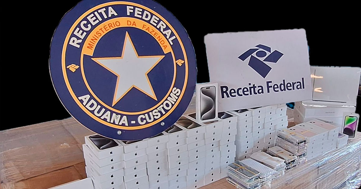 A apreensão ocorreu na quarta-feira (19) em uma transportadora em Cordovil, Zona Norte do Rio, e inclui 176 smartphones, 11 smartwatches e 4 notebooks.